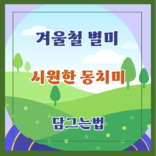 동치미 담그는법 겨울이 오면 생각나는 전통 음식 동치미 동치미는 시원하고 담백한 국물로 누구나 좋아하는 맛을 자랑하는데 오늘은 동치미를 처음 만들어보는 분들도 쉽게 따라 할 수 있도록 간단하고 명확한 레시피를 알아 보고 신선한 재료와 함께 동치미의 맛을 좌우하는 중요한 팁도 함께 알아보겠습니다.