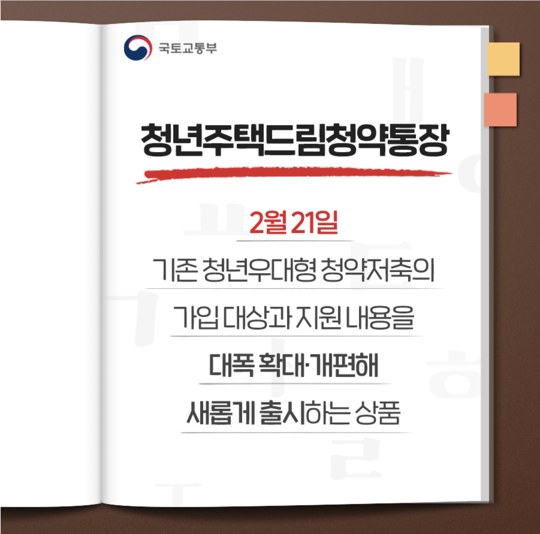 국토교통부는 청년층의 주거안정을 위한 새로운 정책, 청년주택 드림 청약 통장을 출시한다고 발표했습니다. 이 통장은 청년층이 주택을 구입하거나 임대할 때 경제적 부담을 줄여주는 것을 목표로 합니다.