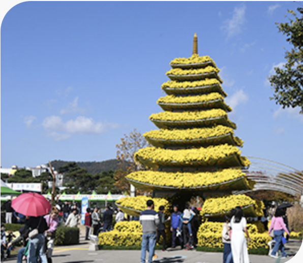 - 국화 작품 전시 : 국화로 꾸며진 대형 조형물과 테마 전시