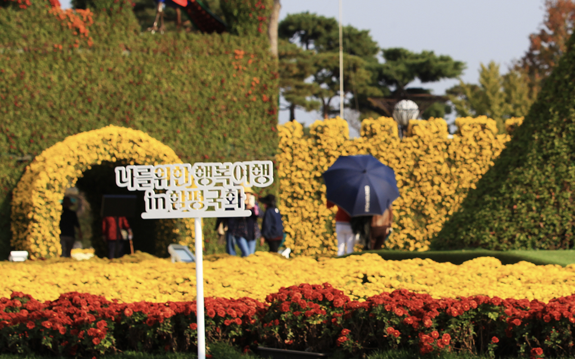 1. 국화 테마 전시 : 약 3만여 평에 이르는 공간에 형형색색의 국화로 꾸며진 테마 정원들이 있으며 국화로 만들어진 대형 동물 조형물과 다양한 꽃길은 마치 동화 속을 걷는 듯한 기분을 느끼게 해줍니다.